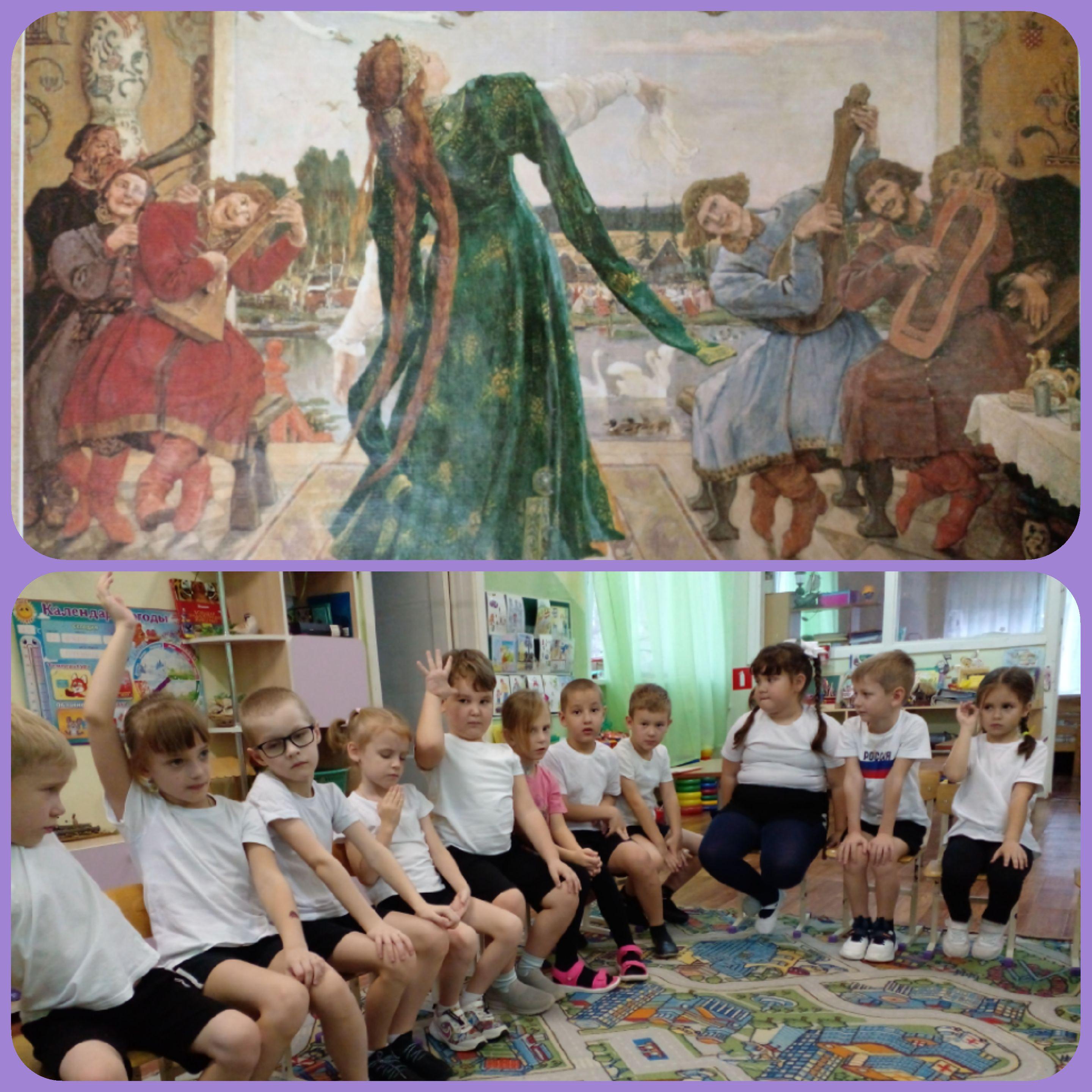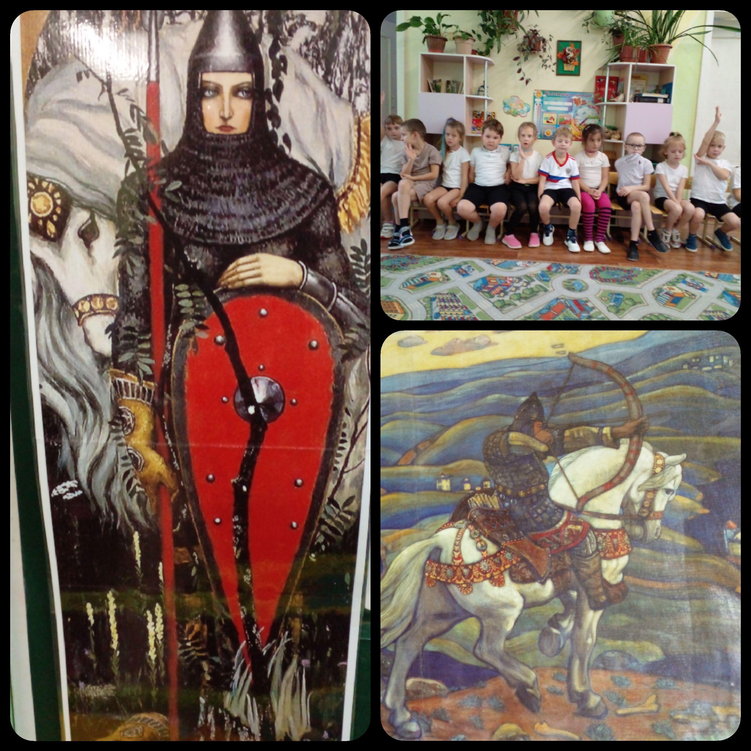 На занятиях по "Ознакомлению с художественной литературой и жанровой живописью" ребята познакомились с былинами о русских богатырях, богатыршах-поленицах, учились составлять описательные рассказы репродукций картин художников Васнецова В.М. "Богатыри", "Царевна-лягушка", Васильева К.А. "Настасья Микулишна".