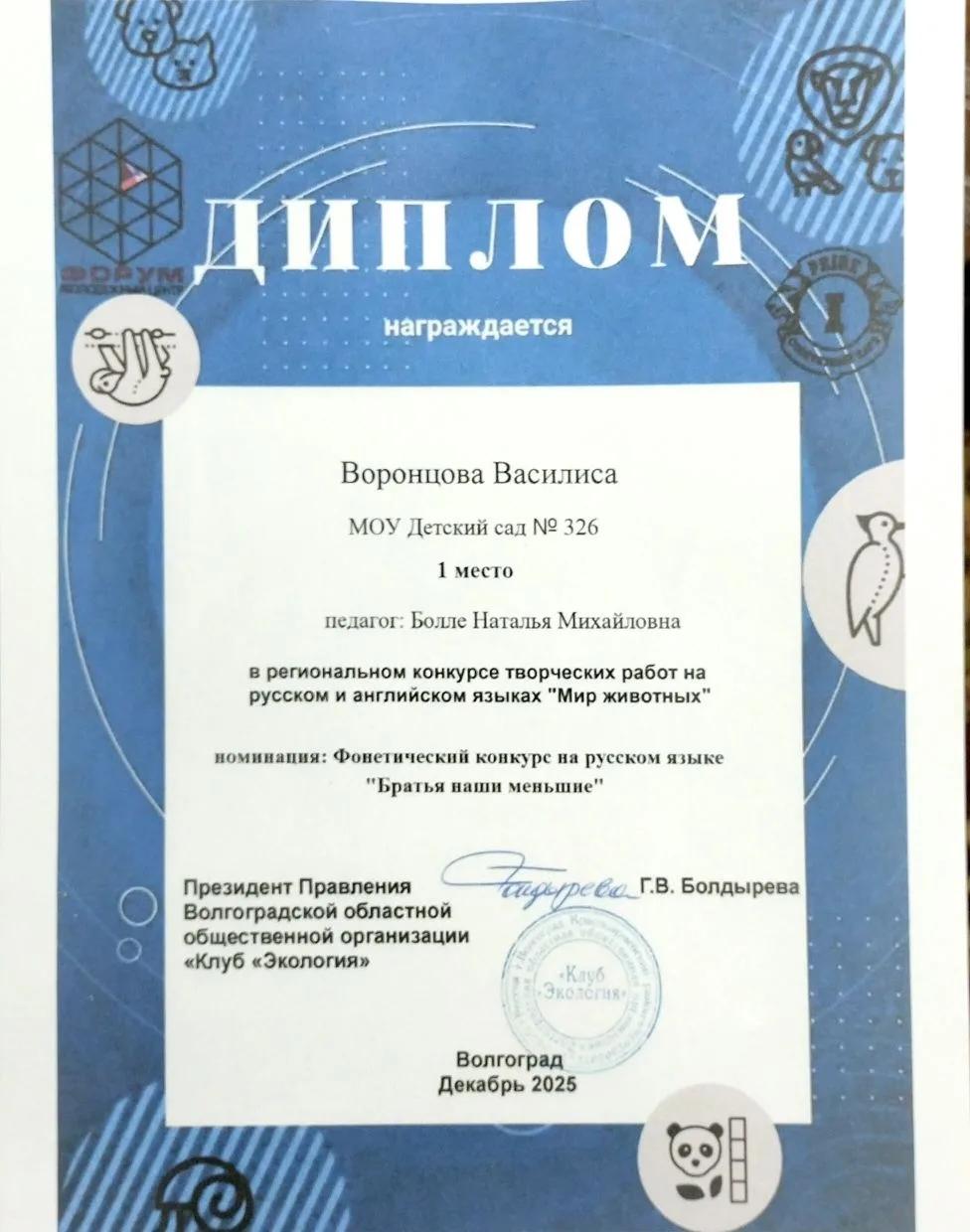 ← Наши достижения Региональный конкурс творческих работ на русском и английском языках "Мир животных".